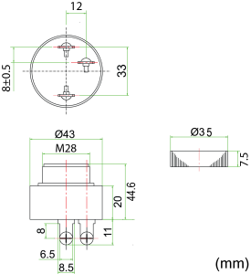 • Nível de Pressão Sonora: 80dB/12v/0,6m